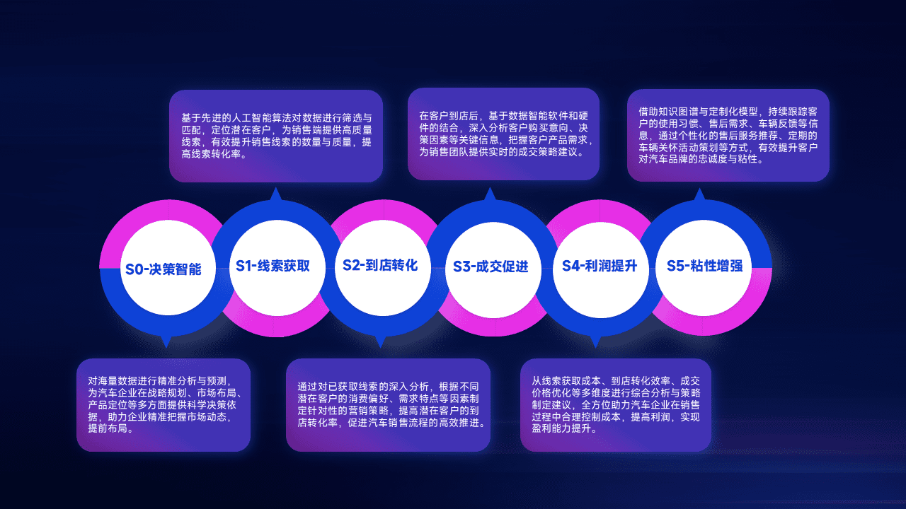 通过拓宽潜在客户来源、、、、优化线索分配并提高到店转化率,,,以增强销售效率。。同时,,利用线索数据不断优化分析模型,,,,有效提升转化率,,,扩大营销影响力。。。。